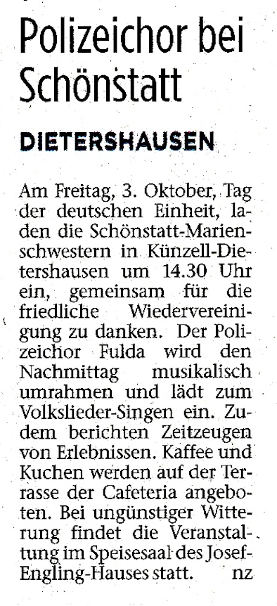 26.09.2025 Fuldaer Zeitung - Polizeichor bei Schönstatt